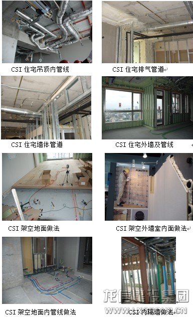 4、拼裝式CSI全裝修住宅:為了與預(yù)制裝配整體式鋼筋混凝土建筑的裝修配套,減少在預(yù)制階段管線預(yù)埋的工作量,同時(shí)方便日后裝修改造,我們與住建部住宅產(chǎn)業(yè)化促進(jìn)中心等合作研發(fā)了拼裝式CSI全裝修住宅技術(shù)。CSI住宅外部結(jié)構(gòu)支撐體采用高耐久性的預(yù)制混凝土材料,延長了住宅的使用壽命。戶內(nèi)樓蓋采用整體無梁樓蓋形式設(shè)計(jì)。為便于改裝改修,盡量做到一個(gè)整體大空間,無小橫梁以及內(nèi)部結(jié)構(gòu)墻,由柱子圍繞,可使隔斷墻和各種管線自由分布;層高在現(xiàn)有室內(nèi)凈高的基礎(chǔ)上增加200mm—300mm作為架空地板層,各種管線鋪設(shè)在架空層內(nèi),相當(dāng)于每戶增加一個(gè)管道層,實(shí)現(xiàn)了同層排水;土建施工時(shí)廚房、衛(wèi)生間、內(nèi)隔墻不定位,住戶可以根據(jù)自己的需要隨意安放。