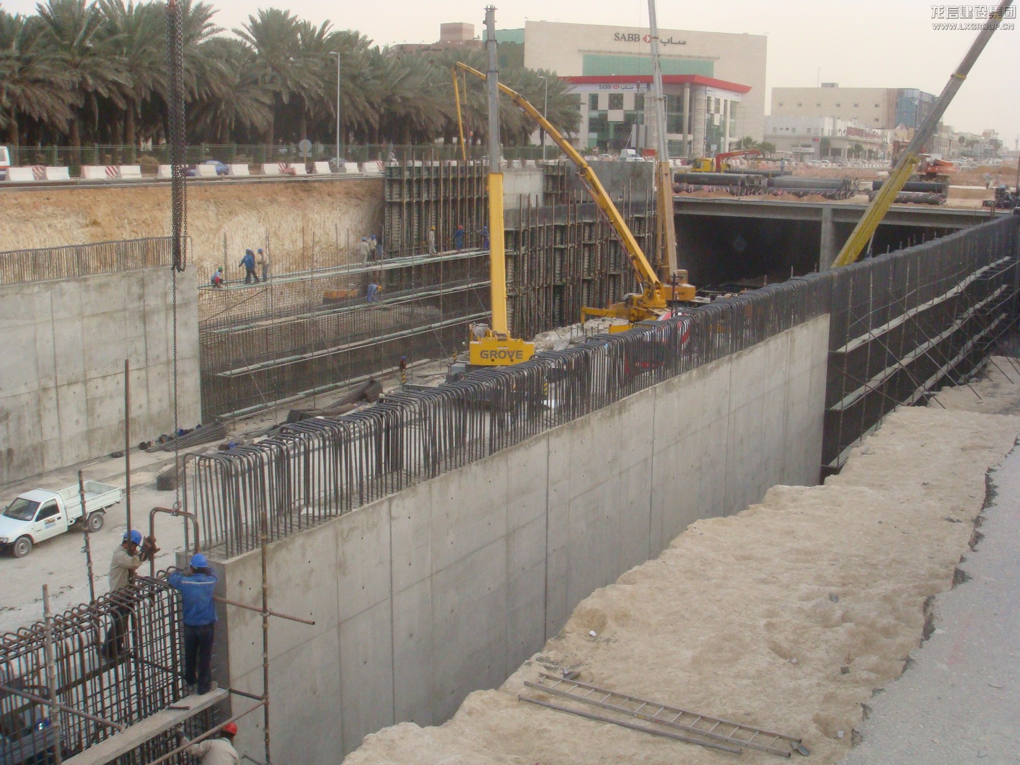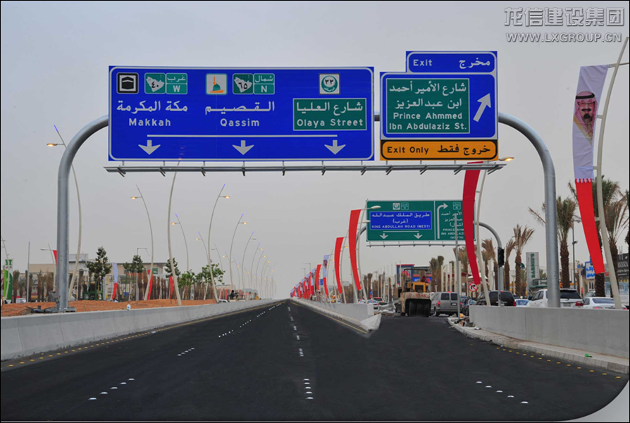 項目位于沙特首都利雅得市阿仆杜拉國王大道上,全長5KM,分為阿卜杜拉•阿齊茲地下通道、歐萊雅路-法赫德國王路隧道、塔卡蘇斯地下通道及普瑞恩施•土耳其路地下通道??偘綖樯程貖W吉公司,龍信公司分包該項目的全部混凝土結(jié)構(gòu)工程,澆筑混凝土達到16萬立方,分包合同總金額為3200.00萬里亞爾。于2008年9月開工,并在2011年02月完工,工期比總包方規(guī)定的時間提前了半年,并且質(zhì)量上面受到了總包的一片好評。